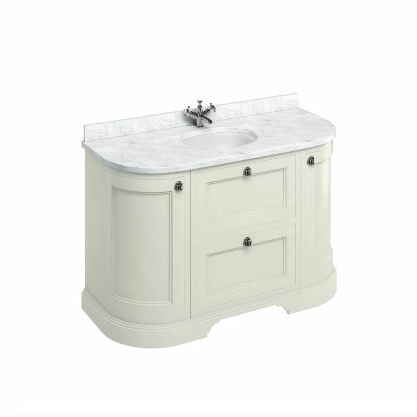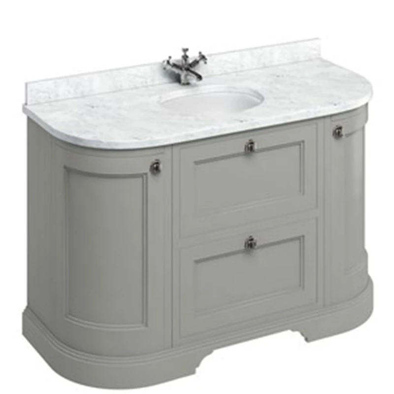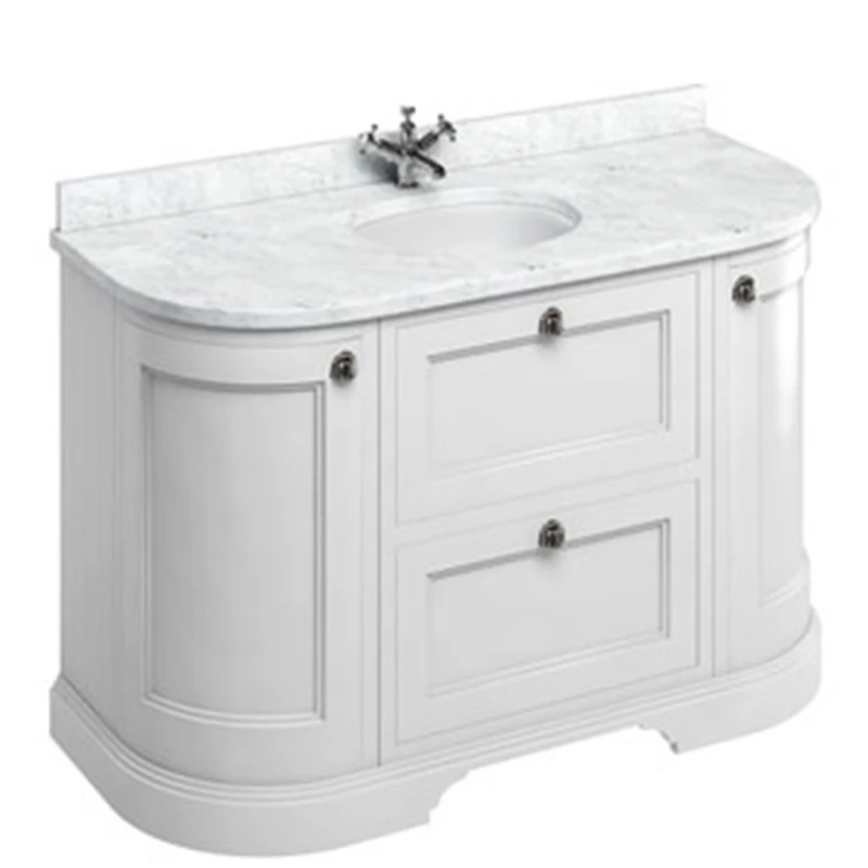 Burlington Freestanding 134 Curved Vanity Unit with Drawers and Minerva Carrara Top