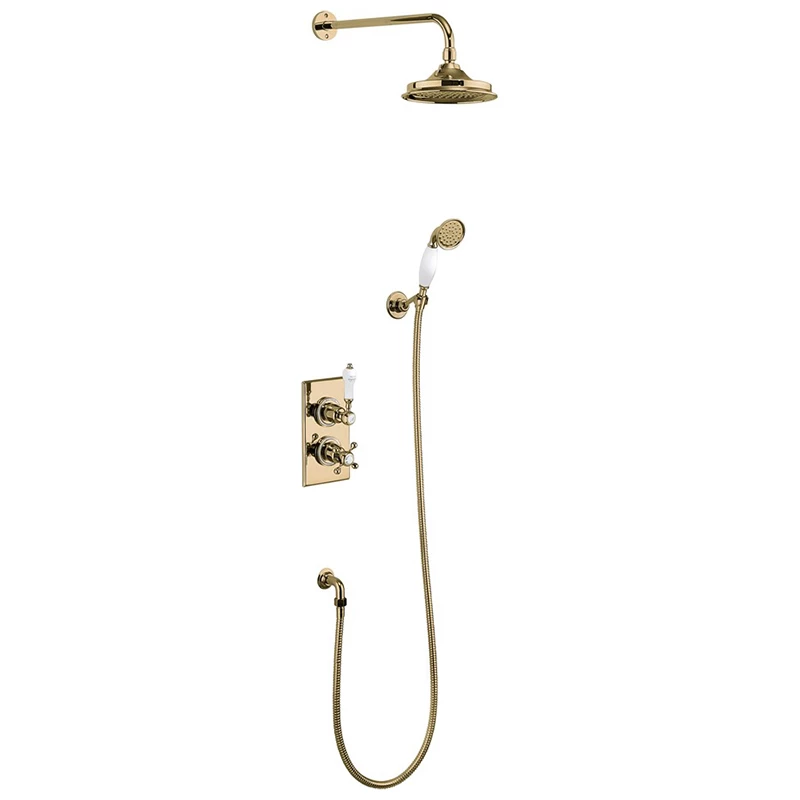 Burlington Trent Thermostatic Two Outlet Concealed Divertor Shower Valve, Fixed Shower Arm, Handset & Holder with Hose with Rose